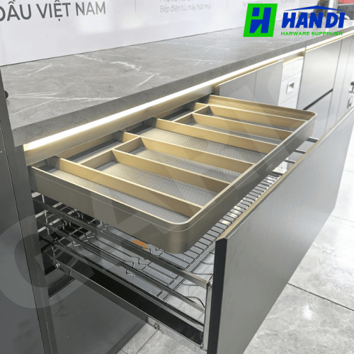 Bạn đang tìm kiếm một giải pháp để sắp xếp gọn gàng thìa, đũa và các dụng cụ bếp nhỏ khác trong tủ bếp? Hệ khay chia thìa đũa GARIS GT03.6AG, GT03.7AG, GT03.8AG, GT03.9AG chính là lựa chọn lý tưởng dành cho bạn. Sản phẩm không chỉ mang lại sự tiện lợi, khoa học mà còn góp phần nâng tầm thẩm mỹ cho không gian bếp của gia đình. Sản phẩm được phân phối chính hãng bởi CÔNG TY TNHH CUNG ỨNG NỘI THẤT HÂN DI, chuyên cung cấp phụ kiện nội thất bếp chất lượng cao.