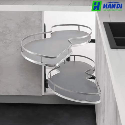Khả năng xoay 360 độ giúp bạn dễ dàng lấy đồ đạc từ mọi vị trí trong tủ bếp mà không cần phải cúi người hay với tay. Điều này giúp tiết kiệm thời gian và công sức, đồng thời mang đến sự thoải mái khi sử dụng.