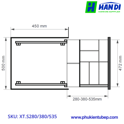 - Với hai mã XT.S380 và XT.S535 có thể tăng thêm chiều rộng tối đa 80mm