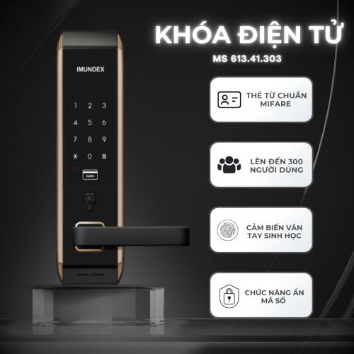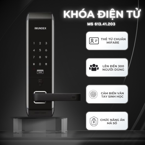 Khóa Điện Tử IMUNDEX 613.41.203 tập trung vào tốc độ và dung lượng, giúp kiểm soát truy cập dễ dàng cho gia đình và văn phòng: