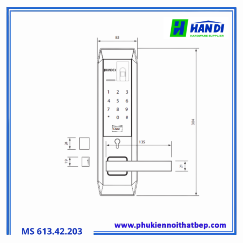 Thông số kỹ thuật Khóa vân tay IMUNDEX 613.42.203