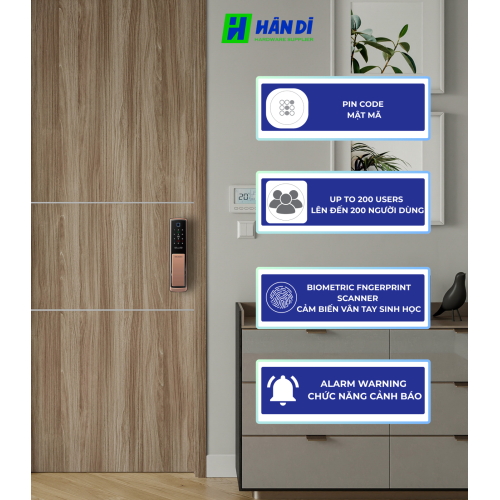 Vân tay sinh học (Biometric fingerprint scanner): Lưu trữ đến 100 vân tay.