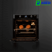 Lò nướng âm tủ, mặt kính đen viền inox, màn hình TFT
