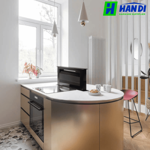 Thiết kế Downdraft (hút âm bàn) độc đáo, tạo không gian bếp tối giản.