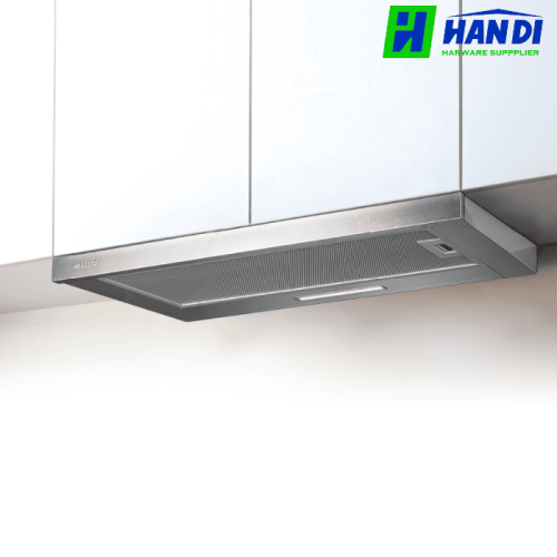 Điểm cộng lớn nhất của dòng máy này chính là thiết kế âm tủ dạng kéo. Khi không sử dụng, máy có thể được thu gọn hoàn toàn vào bên trong tủ bếp, giữ cho bề mặt bếp luôn gọn gàng và thẩm mỹ. Khi cần hoạt động, bạn chỉ cần kéo mặt trước của máy ra là hệ thống hút mùi sẽ được kích hoạt. Chất liệu bề mặt thường là inox cao cấp hoặc sơn tĩnh điện xám, dễ dàng lau chùi và bền bỉ theo thời gian. Kích thước cụ thể (W600/700/900 x D300 x H205mm) cho phép lắp đặt vừa vặn vào hầu hết các loại tủ bếp tiêu chuẩn.