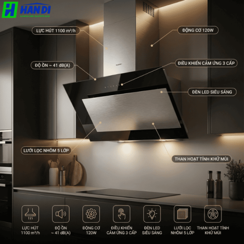 Ngoài khả năng hút mạnh mẽ, máy còn tích hợp bộ lọc khử mùi bằng than hoạt tính. Than hoạt tính có khả năng hấp thụ và trung hòa các mùi hôi khó chịu, mang lại không khí trong lành, tinh khiết cho căn bếp. Đây là tính năng quan trọng giúp nâng cao chất lượng không gian sống và bảo vệ sức khỏe hô hấp cho cả gia đình.