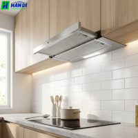 - Thiết kế: Dạng hút mùi kéo rút với mặt kính trắng là điểm nhấn độc đáo, giúp tiết kiệm không gian khi không sử dụng và dễ dàng mở ra khi cần thiết. Kích thước 700mm phù hợp với hầu hết các loại bếp nấu gia đình.
