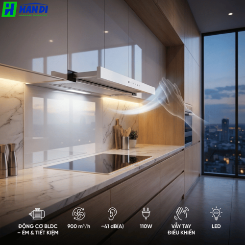 - Công suất động cơ 110W: Cung cấp lực hút mạnh mẽ, đảm bảo loại bỏ hiệu quả mùi dầu mỡ, khói và hơi nước trong quá trình nấu nướng.
