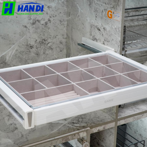 Trong không gian sống hiện đại, việc tối ưu hóa công năng và tính thẩm mỹ cho tủ quần áo ngày càng trở nên quan trọng. Đáp ứng nhu cầu này, Ngăn kéo đựng đồ trang sức GARIS GW07.60/ 70/ 80/ 90 đã ra đời như một giải pháp hoàn hảo, mang đến sự tiện nghi và sang trọng cho mọi căn phòng. Sản phẩm không chỉ là một phụ kiện tủ quần áo thông minh mà còn là điểm nhấn tinh tế, giúp bảo quản và sắp xếp các món đồ trang sức, phụ kiện thời trang một cách ngăn nắp và khoa học.