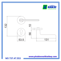 Kích thước: Chiều dài tay gạt: 131mm; Chiều cao tay gạt: 56mm; Kích thước ốp (đường kính): Φ53.5mm