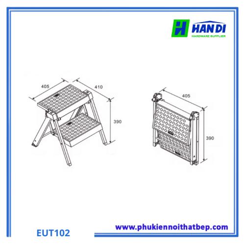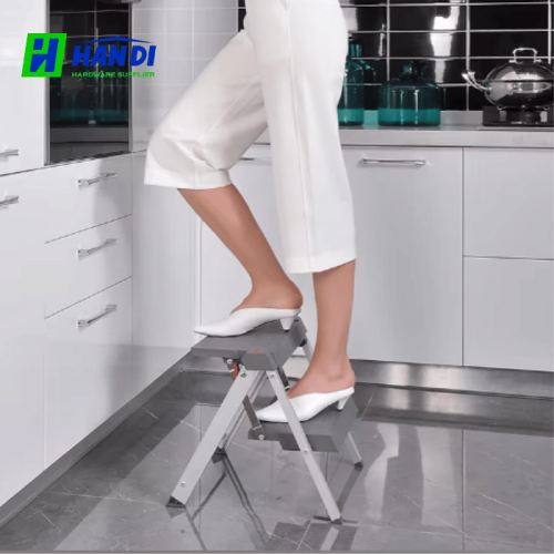 Thiết kế: 2 bậc (2 tầng) thông minh, có thể gấp gọn tuyệt đối sau khi sử dụng để cất vào các khe tủ hẹp.