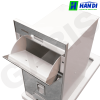 Thiết kế thông minh cho phép mặt thùng gạo thay thế cánh tủ và được bắt cố định, giúp bạn tận dụng tối đa không gian bếp. Điều này đặc biệt hữu ích cho những căn bếp có diện tích nhỏ, giúp tối ưu hóa không gian lưu trữ.