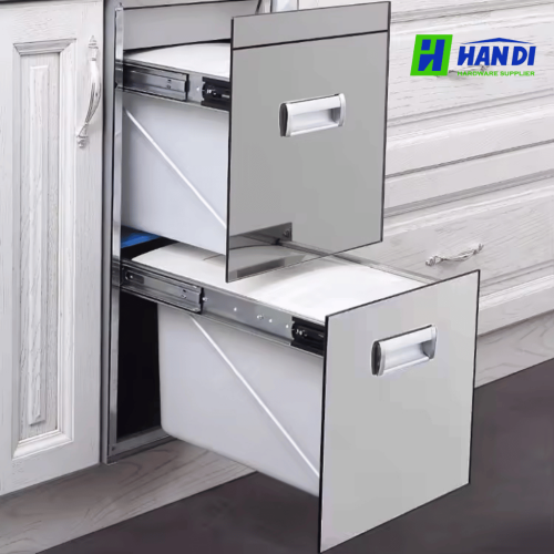 Ray trượt giảm chấn đi kèm giúp thao tác kéo mở và đóng thùng gạo trở nên nhẹ nhàng, êm ái, không gây tiếng ồn khó chịu. Chất liệu ray trượt cao cấp đảm bảo độ bền và tuổi thọ lâu dài cho sản phẩm.