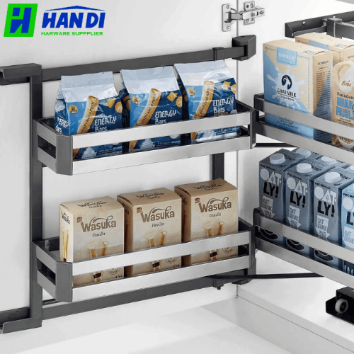 Với thiết kế tủ đồ khô 2 tầng, cung cấp không gian lưu trữ rộng rãi, giúp bạn dễ dàng phân loại và sắp xếp thực phẩm khô, gia vị một cách khoa học. Cơ chế ray trượt êm ái, cho phép bạn dễ dàng kéo ra, đẩy vào, lấy đồ dùng một cách nhanh chóng và thuận tiện.