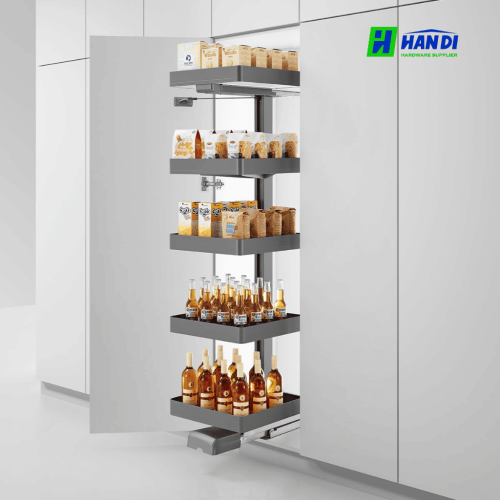 Tủ kho 5 tầng nhôm âm tủ Eurgold EUM5045/EUM5045G là một trong những sản phẩm phụ kiện tủ bếp cao cấp được CÔNG TY TNHH CUNG ỨNG NỘI THẤT HÂN DI phân phối, đáp ứng nhu cầu ngày càng cao của khách hàng về sự tiện nghi và thẩm mỹ trong không gian bếp.