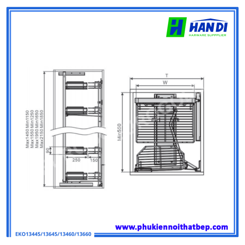 Vị trí lắp đặt: Tủ bếp đứng/Tủ kho cao