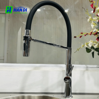 - Thiết kế cổ ngỗng tinh tế: Với ống dẫn mềm màu đen, vòi không chỉ trông hiện đại mà còn tối ưu hóa không gian sử dụng, phù hợp với nhiều phong cách bếp từ cổ điển đến tối giản.