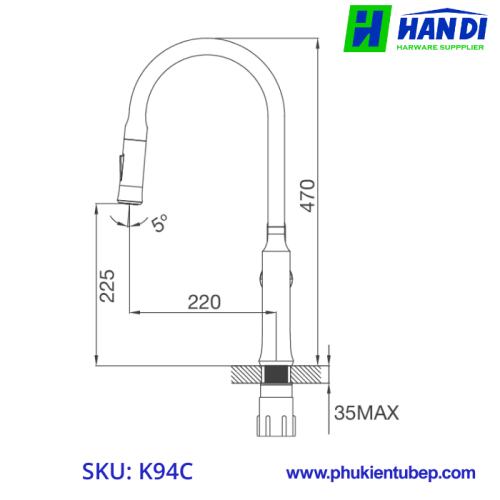 Hệ thống dây rút của MALLOCA K94C thường được tích hợp cơ chế thu hồi tự động, đảm bảo đầu vòi luôn gọn gàng khi không sử dụng, tránh tình trạng dây bị lủng lẳng hay vướng víu.