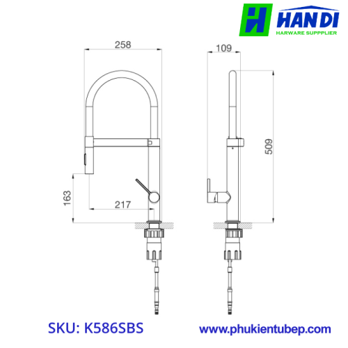 Phân loại: Vòi rửa chén nóng lạnh dây silicon MALLOCA K586SBS